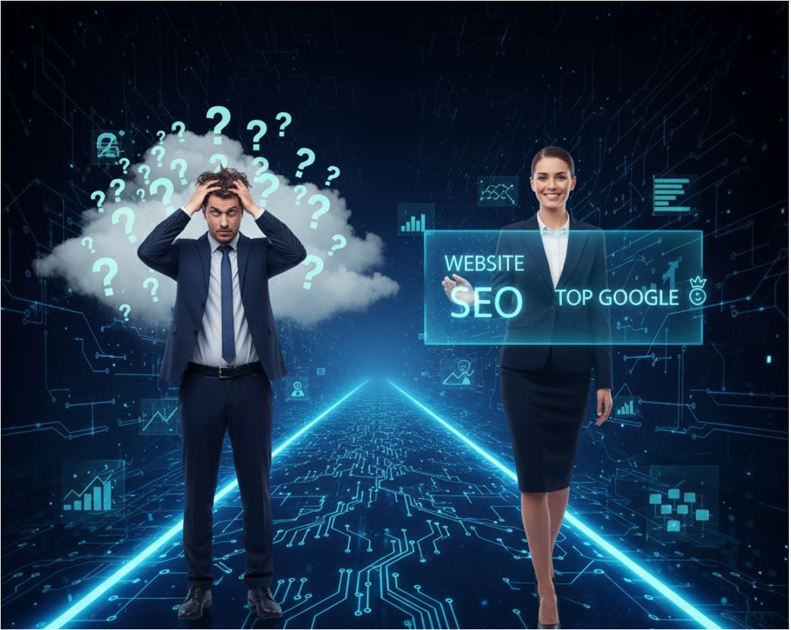 Nếu không có website: Gian hàng của bạn không tồn tại trong khu chợ này. Khi khách hàng tìm kiếm "dịch vụ thiết kế web HCM", "mua giày thể thao nam", hay "khóa học tiếng Anh cho người đi làm", họ sẽ không bao giờ tìm thấy bạn thông qua công cụ tìm kiếm. Bạn đang tự nguyện từ bỏ hàng ngàn, thậm chí hàng chục ngàn lượt truy cập tiềm năng mỗi tháng.