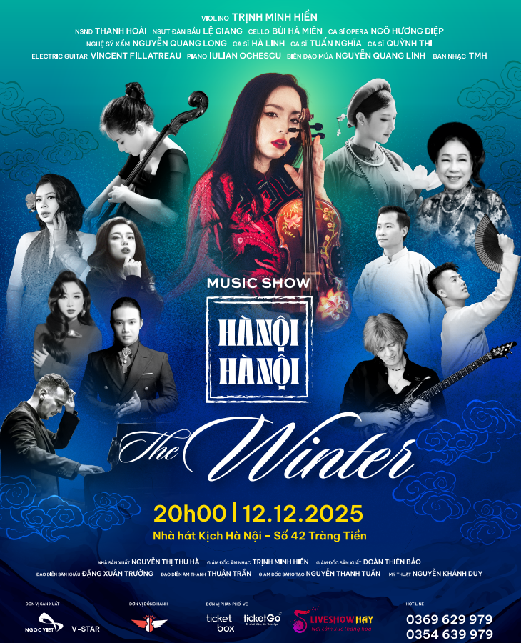 Hà Nội Hà Nội – The Winter” là chương mở đầu chuỗi 4 Music Show do nghệ sĩ violin Trịnh Minh Hiền, Ngọc Việt Shows và V-Star đồng tổ chức. Đêm nhạc diễn ra lúc 20h ngày 12/12/2025 tại Nhà hát Kịch Hà Nội, mang đến hành trình cảm xúc nơi âm nhạc kể chuyện Hà Nội bằng giai điệu violin, ánh sáng và ký ức mùa đông. Một show nghệ thuật đẳng cấp dành cho những tâm hồn yêu Hà Nội.